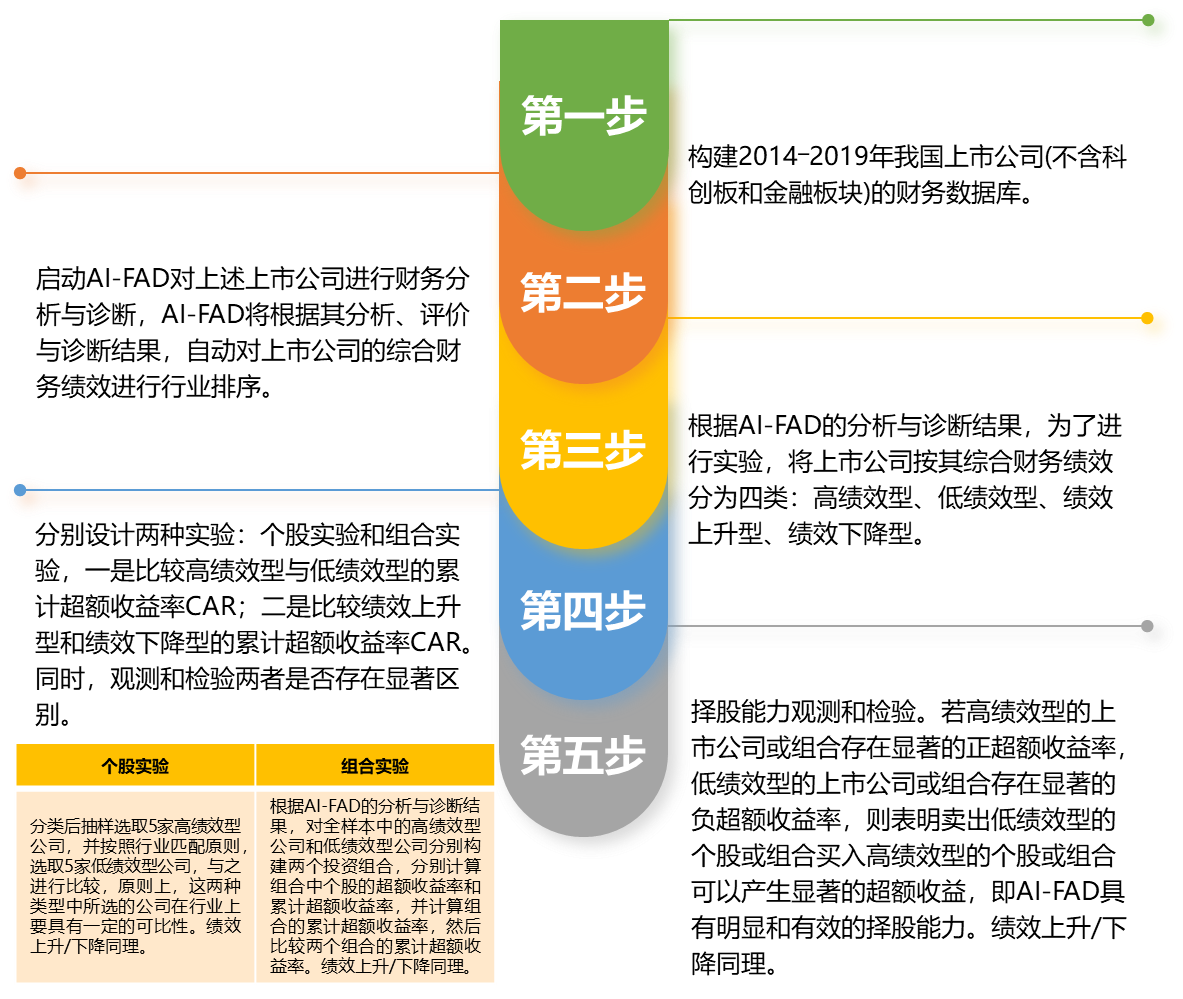 该研究基于自主研发的“智能财务分析与诊断机器人”,设计了两个投资决策实验,并实证检验了其择股能力。