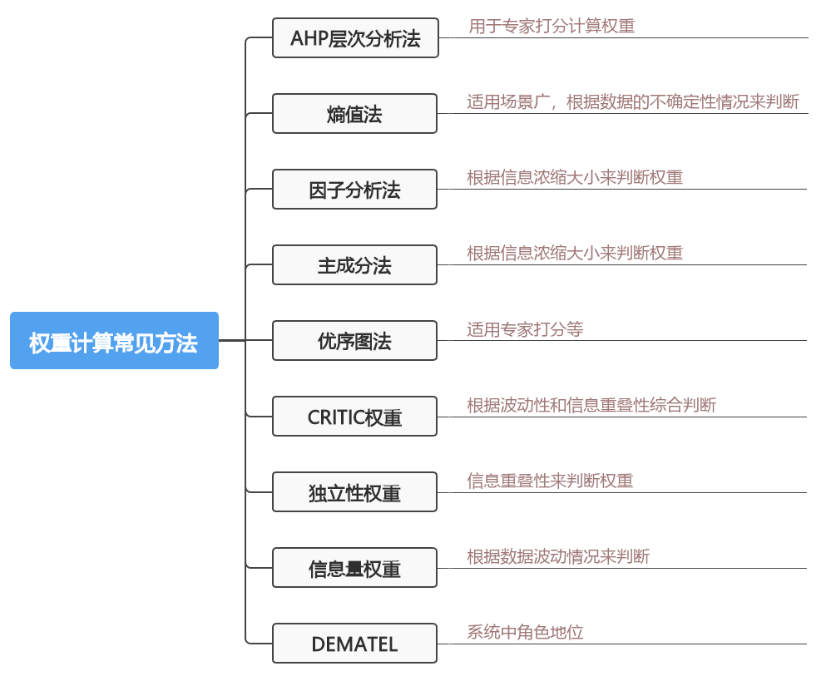 结合各类方法计算权重的原理大致上可分成4类,分别如下:
