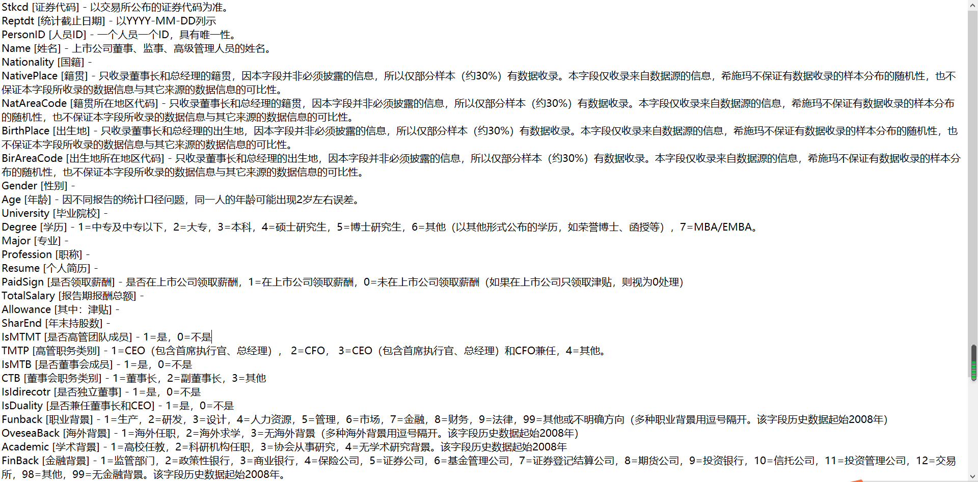 最新高管个人特征数据,1999-2021