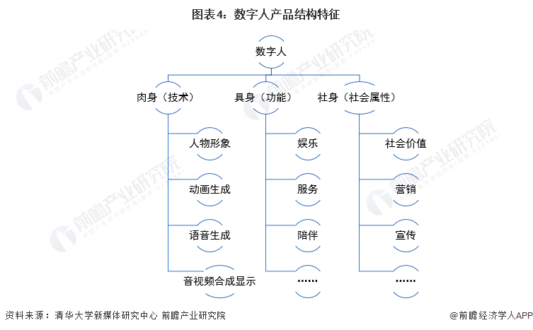 数字人产品以此为基础,“肉身”即为人物从设计到面向大众所囊括的技术(如建模、渲染等技术),“具身”即为数字人产品在人类社会的功能性(如陪伴、服务等功能),“社身”即为数字人产品在人类社会中的社会属性(如社会价值、宣传等)。