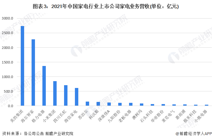 2、中国家电行业家电业务营收排名