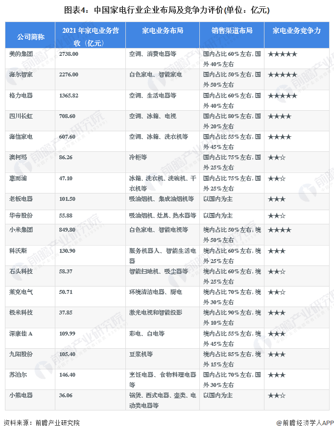 3、中国家电行业企业布局及竞争力评价
