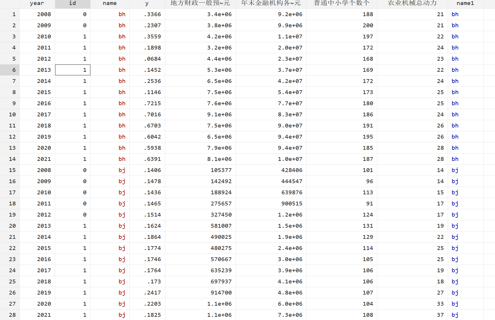 附件是我的部分数据截图,准备做双固定效应回归然后进行平行趋势检验。
