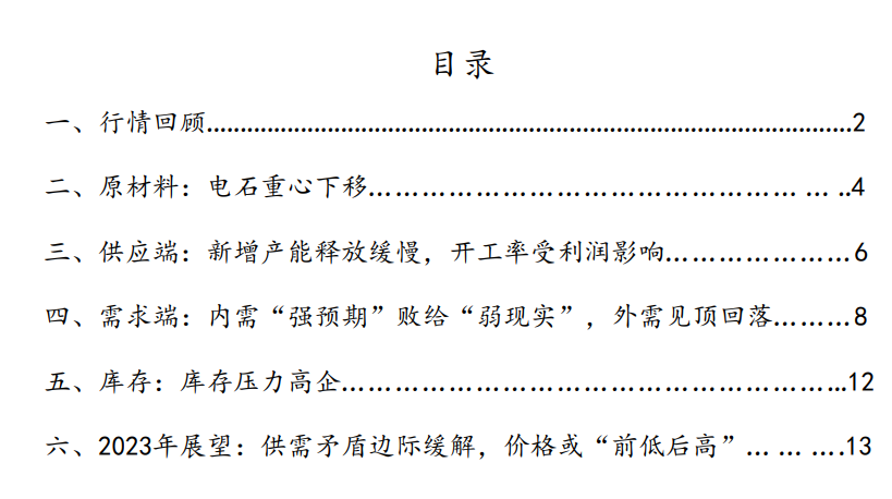 报告摘要:原料端:2023年电石成本端有一定支撑,电石供需面难