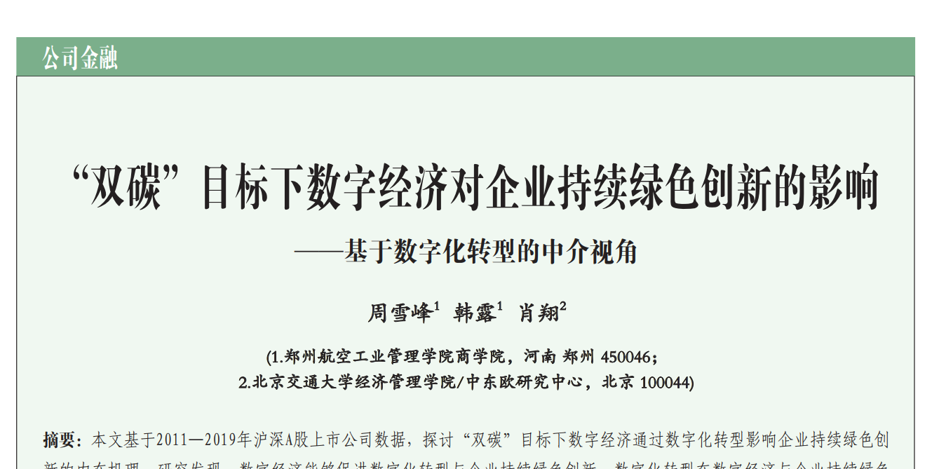 三、参考文献周雪峰,韩露,肖翔.“双碳”目标下数字经济对企业持续绿色创新的影响——基于数字化转型的中介视角[J].证券市场导报,2022(11):2-12.