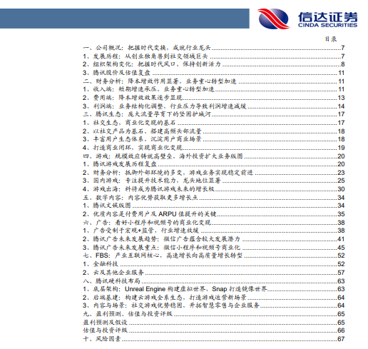 腾讯社交生态的成功是业务版图实现强大商业化变现能力的基石。其商业模式主要是通过免费提供互联网社交应用——微信和QQ,获取海量c端个人用户,然后通过游戏、互联网广告、支付和云服务等方式实现商业化变现。(1)搭建高频头部流量:利用免费的在线通讯产品微信和QQ获取海量用户,22Q2微信(含海外版)月活跃用户数12.99亿,同比增长3.8%,稳居国内社交龙头地位,庞大的用户群体形成的网络效应成为腾讯的核心竞争力。(2)丰富用户生态体系:不断地丰富和延伸微信功能,连接微信生态中的各个模块如小程序、视频号、公众号、企业微信、腾讯会议等,已经形成了涵盖工作、生活、娱乐等方方面面的庞大生态体系,打通线上线下连接的超级APP,不断丰富商业场景以增强用户粘性。(3)完成商业闭环以实现变现:利用较大的流量基础,通过游戏、数字内容、广告、金融、云、投资等工具和服务等获得经营利润。基于微信等基本盘的较大流量加持,腾讯的各个产品能够快速接触到各类目标客户,并且流量和渠道费用大幅降低,以腾讯强大的社群性覆盖越来越多的领域,完成商业化变现。