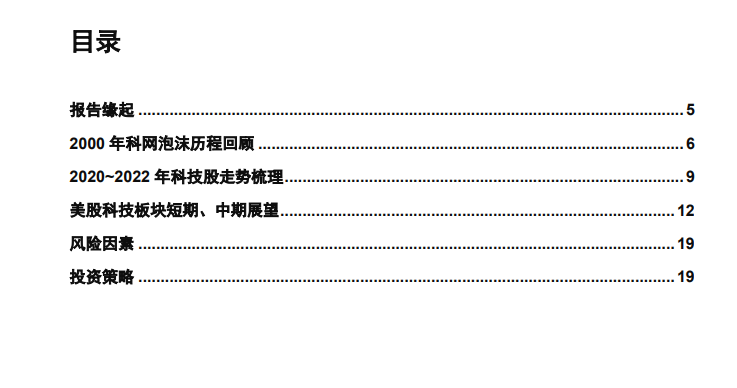 ▍报告缘起:年初至今,美股科技板块主要指数均有30%以上跌幅,市场更多将其简单归于政策利率快速、大幅上行后的结果。我们总结发现,本次疫情带来的美股科技股2020~2021年牛市,以及2022年以来的大幅下跌,和美股2000年科网泡沫期间的表现存在一定的相似和可比之处,并体现在产业周期、公司业绩、政策利率、外围宏观环境等层面。我们相信,对于科网泡沫演变历程的回顾和总结,对于当下美股科技股主要矛盾的甄别,以及市场短期、中期走势的判断,具有重要的意义,这亦是我们本篇文章的主要内容。
