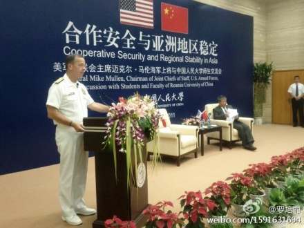 美国海军上将马伦7月10日在人大演讲