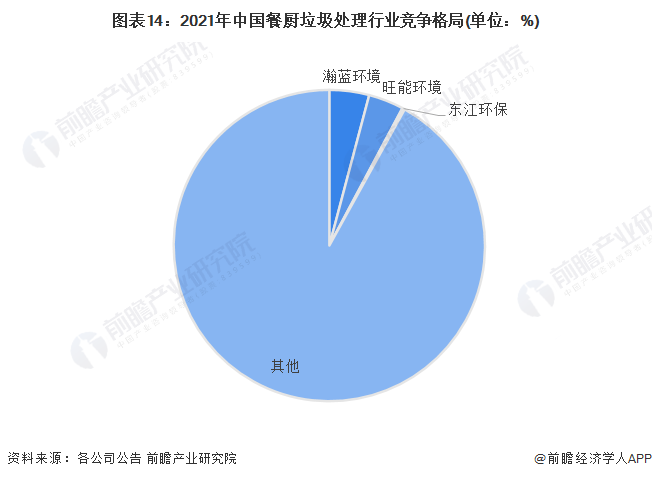 从中国餐厨垃圾处理行业竞争格局来看,2021年,瀚蓝环境餐厨垃圾处理能力为3069吨/日,占餐厨垃圾总处理规模的4.13%,旺能环境餐厨垃圾处理能力为2720吨/日,占比3.66%。总体来看,餐厨垃圾处理市场集中度较低。