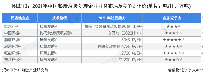 目前,布局了餐厨垃圾处理业务的上市企业中,瀚蓝环境的餐厨垃圾处理能力遥遥领先于其它企业。餐厨垃圾处理产业链上的其它代表性企业业务布局及竞争力情况如下: