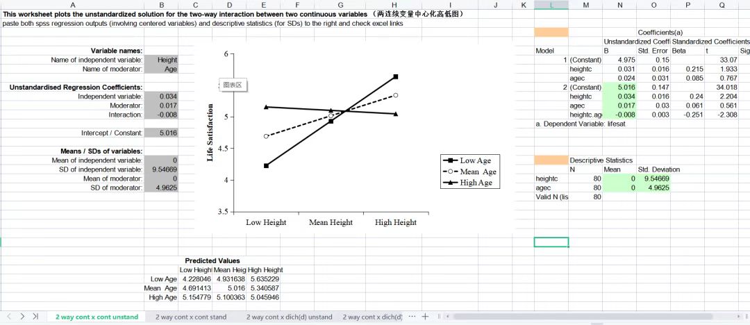 excel调节效应绘制图模板,输入相应数值即可生成效应图
