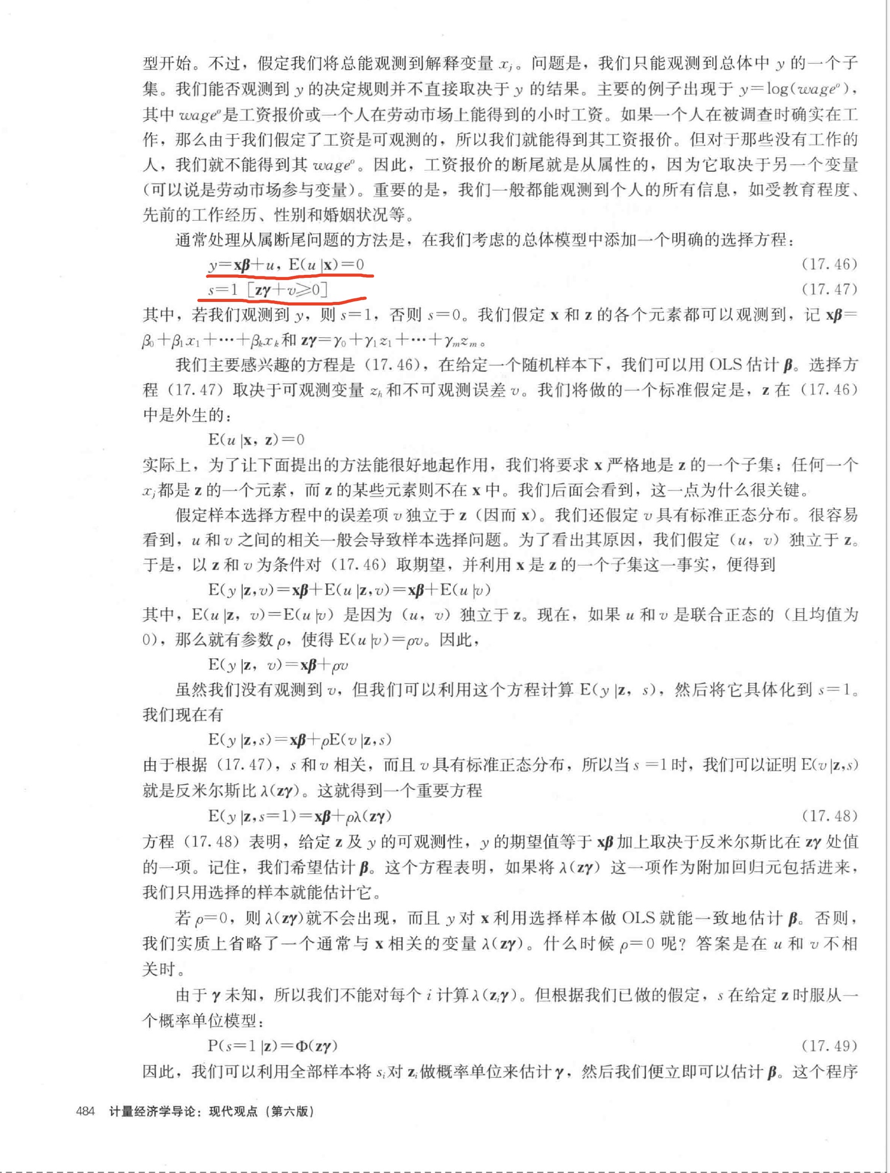 我的分析是母职对工资的影响,为了解决自选择问题使用heckman model,第二阶段对工资的影响我控制了工作相关变量,比如公司规模;第一阶段是预测的是否就业,那么第一阶段是否需要纳入工作相关变量呢?逻辑上我觉得是不应该纳入的,因为对于没有工作的人而言不存在当前工作相关变量,都是缺省值,但查heckman model没有查到相关的解释,请求各位大佬援手!