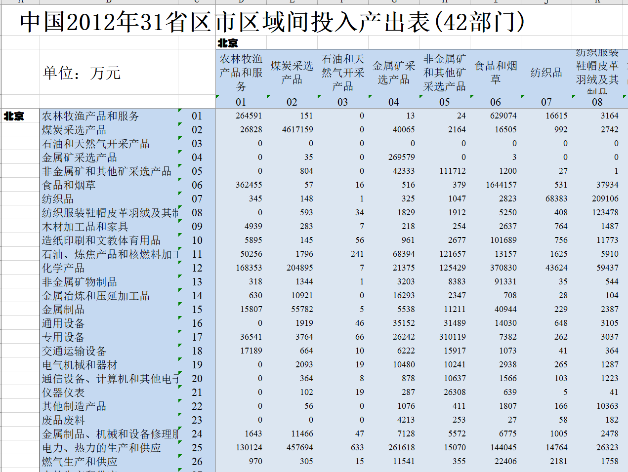 注意:由于上传失误,但鉴于附件无法删除,下面的地区间投入产出表与2007-2012地区间投入产出表是一样的,如有需要,只需要购买一个即可。