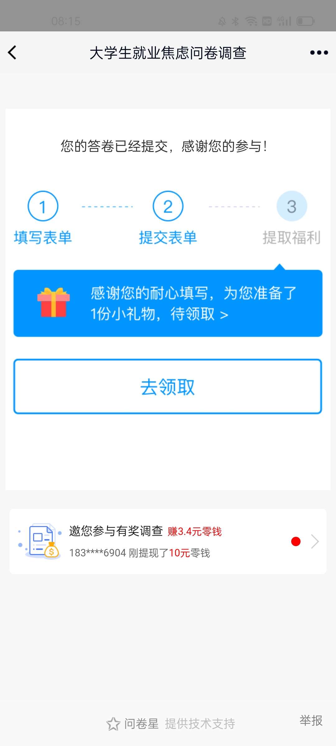 问卷完成截图