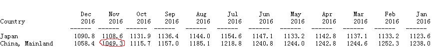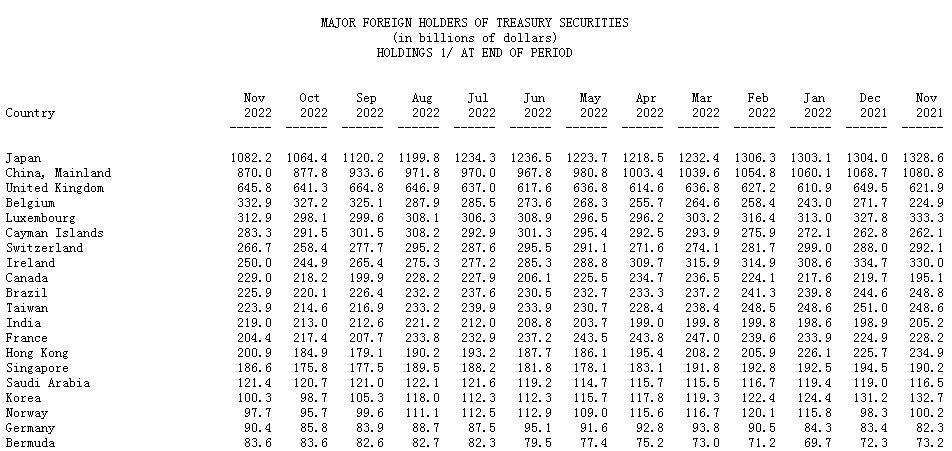 从美国财政部公布的数据来看,去年十月中国大幅减持美债,单月减持金额超过550亿美元,