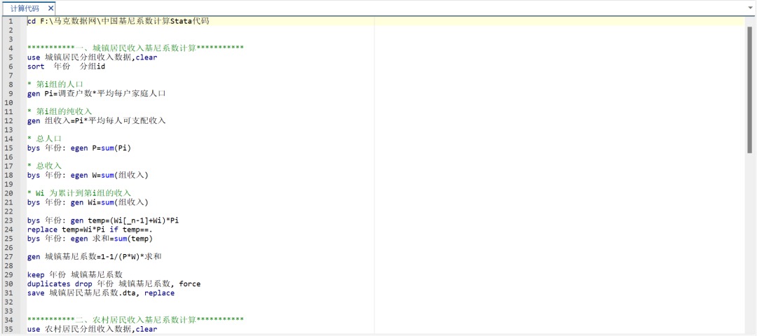 一、数据介绍数据名称:中国基尼系数计算Stata代码