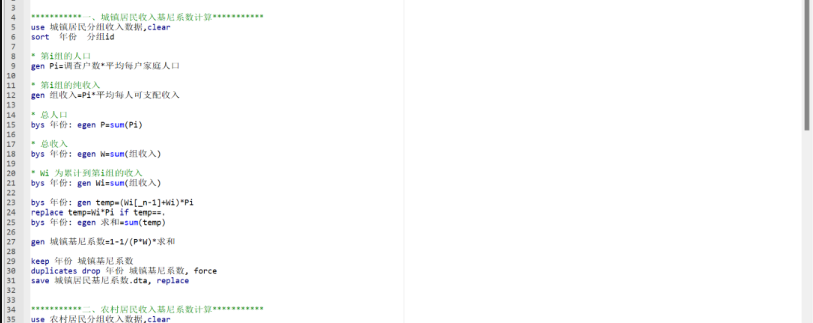 一、数据介绍数据名称:中国基尼系数计算Stata代码