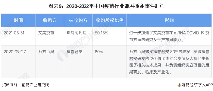 2020-2022年,中国疫苗行业兼并重组事件较少,仅发生两起。兼并重组的类型以中游企业横向整合为主。通过横向整合,企业能够联合扩大企业规模,实现规模经济和范围经济,提高经营效率;提高企业在疫苗行业的市场份额,提高市场集中度,增强企业对市场的控制能力,提高企业的市场竞争力。