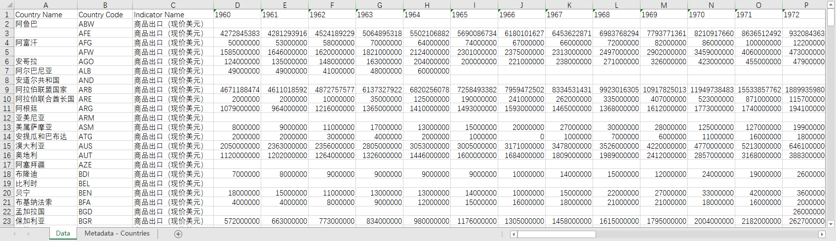 数据范围:全球世界各国200多个国家和地区