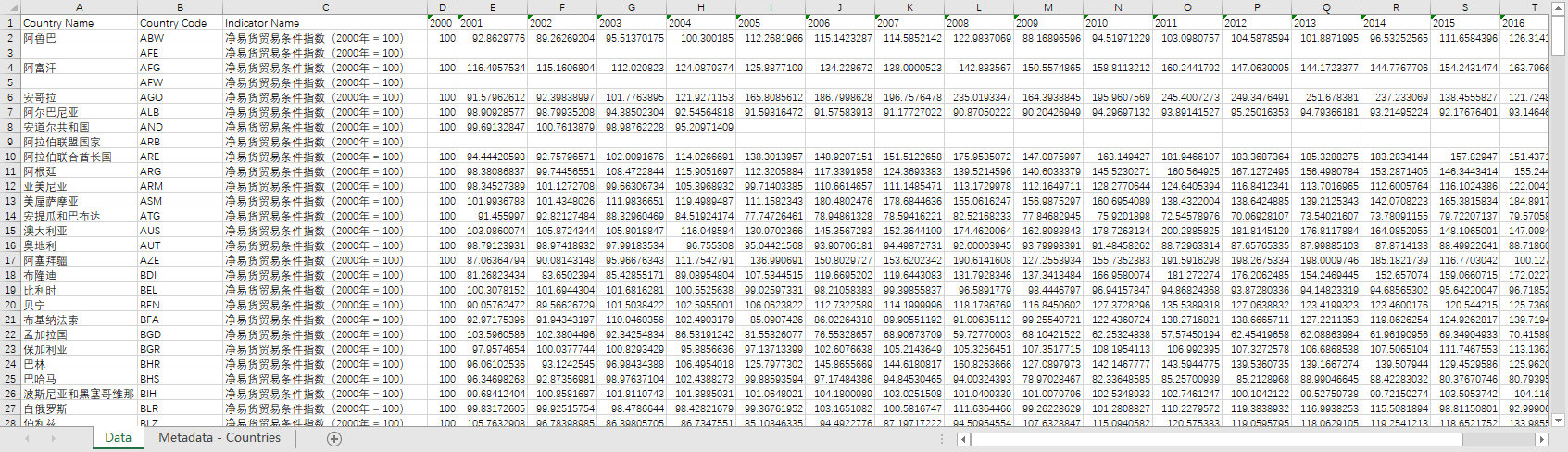 全球世界各国进口出口国际贸易数据1960-2021商品贸易占GDP百分比净易货贸易条件指数