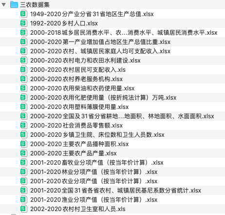 4、指标说明:各种作物产量、播种面积、产值、耕地面积、农村居民可支配收入、乡村人口数据、农村居民消费水平等。
