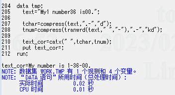freyabc 发表于 2023-2-8 11:16 %Marco tmp; %let text=My1 number36 is00.; %let text_cor=%sysfunc(compress(&text.,.-,d)) %sysfu ...