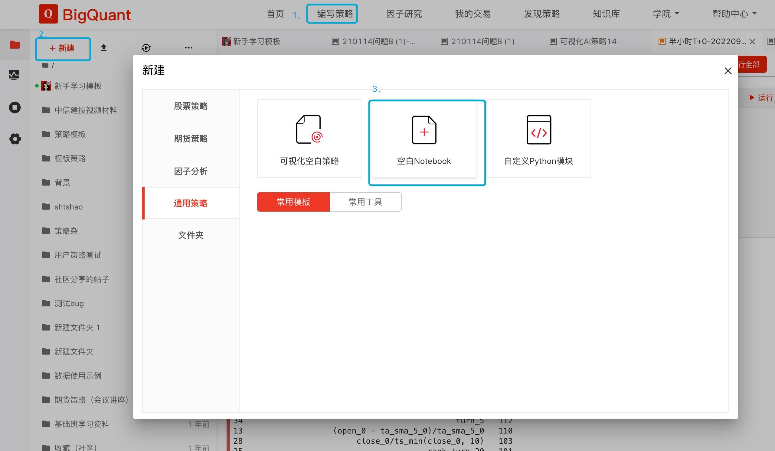 - 使用ChatGPT:导航栏编写策略-新建-通用策略-空白notebook