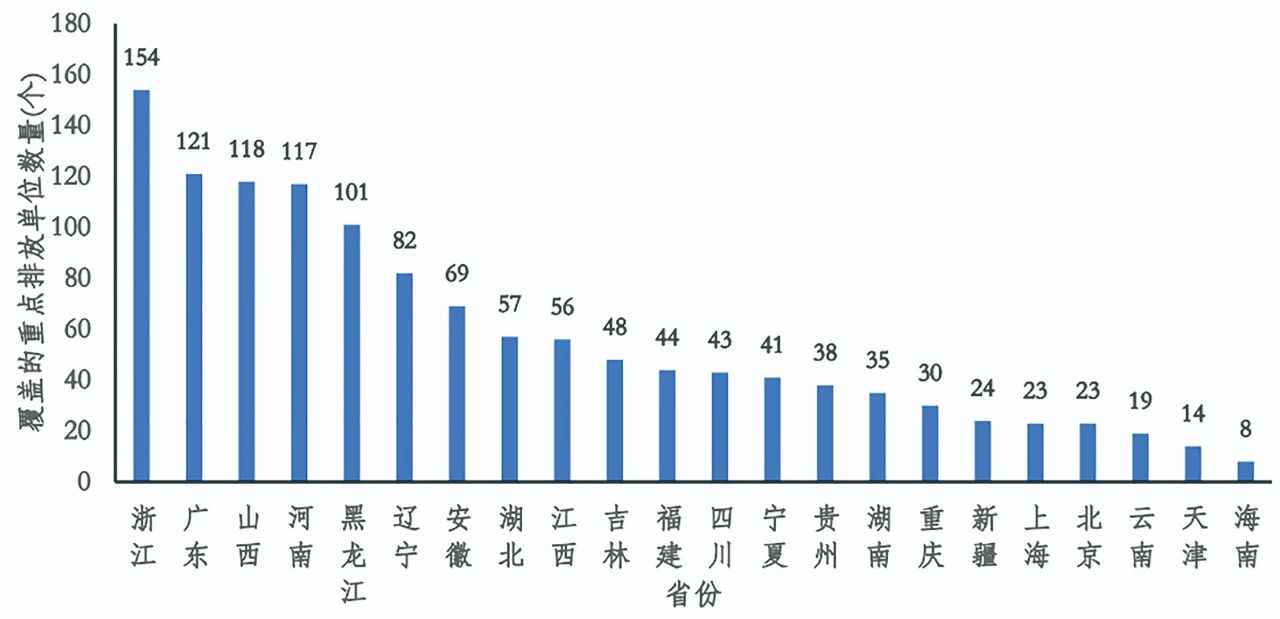 ▲2022年纳入全国碳排放权交易配额管理的重点排放单位分布情况(部分)