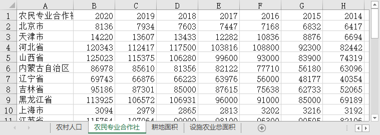 yusb 发表于 2023-2-14 23:45 全国30个省份各省级三农数据2008-2020农村人口农民专业合作社耕地面积设施农业总面积 数据来源:中国统计年 ...