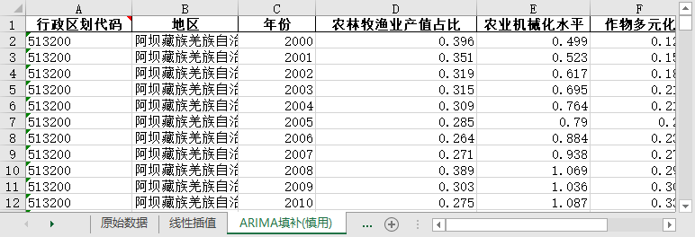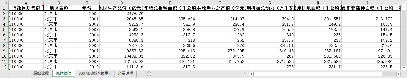 数据整理:数据来自网络,内含原始版本、线性插值、ARIMA填补版本无缺失