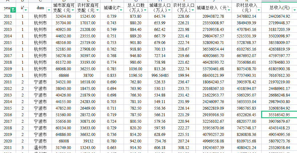 一、数据来源:浙江省统计年鉴+11个地级市统计年鉴+插值等补充缺失值