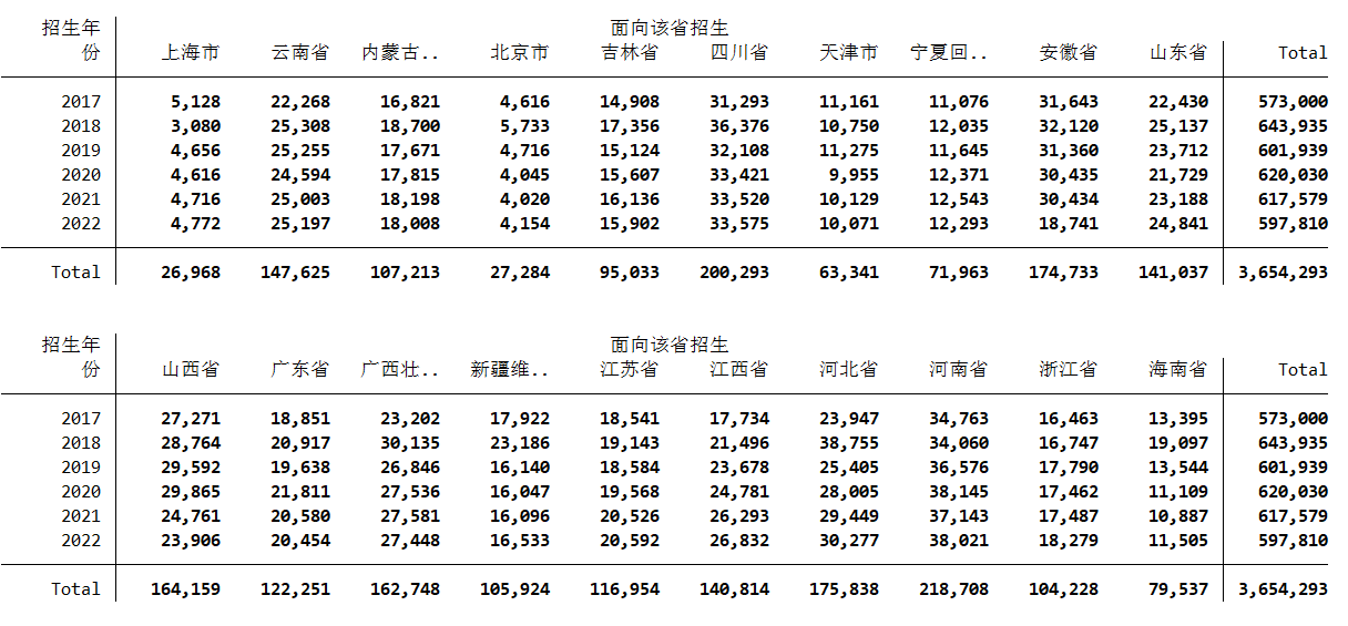 爬虫爬取2017-2022年2774所院校各专业在各省的高考招生情况。