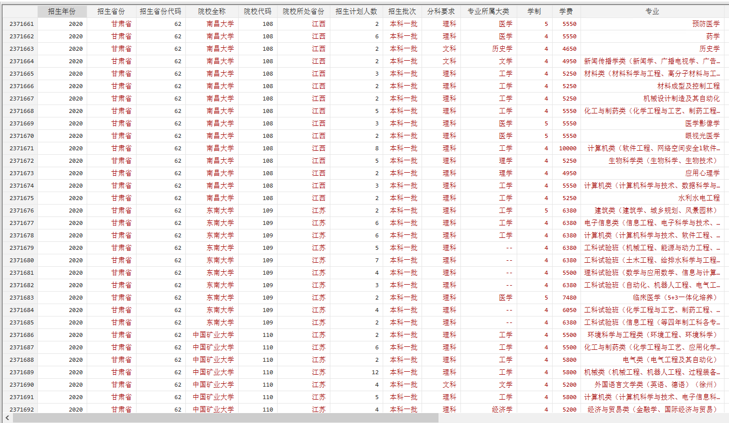 共365万余条数据,基本上已经包含大陆高考的所有招生专业,但无法保证全部包含(也无从得知)。