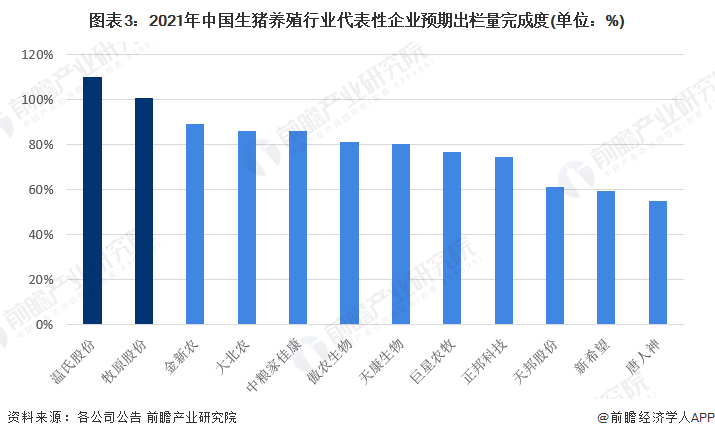 从预期出栏量完成度来看,温氏股份、牧原股份较好完成2021年初制定生猪出栏目标。