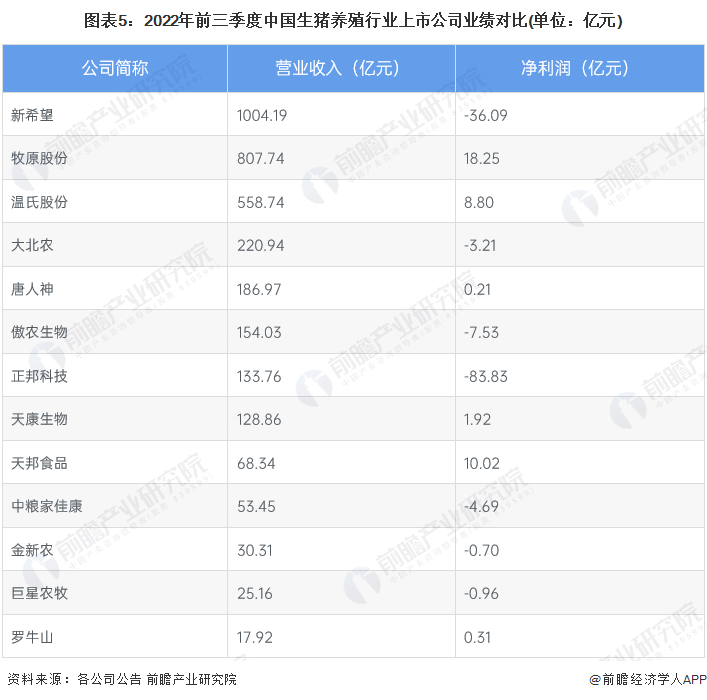 从净利润来看,2022年前三季度,牧原股份、天邦食品、温氏股份位于行业前三名,净利润分别为18.25亿元、10.02亿元和8.8亿元。