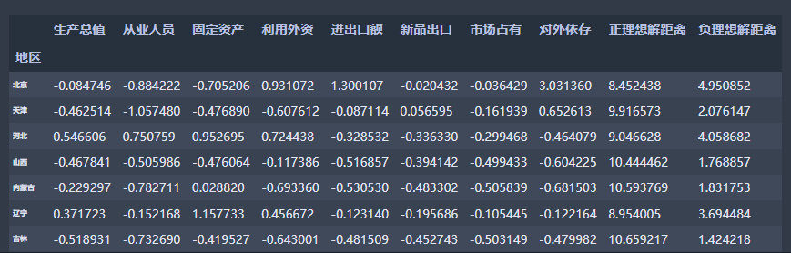 dminus = np.linalg.norm(data_z - cminus, axis = 1)data_z['正理想解距离'] = dplus