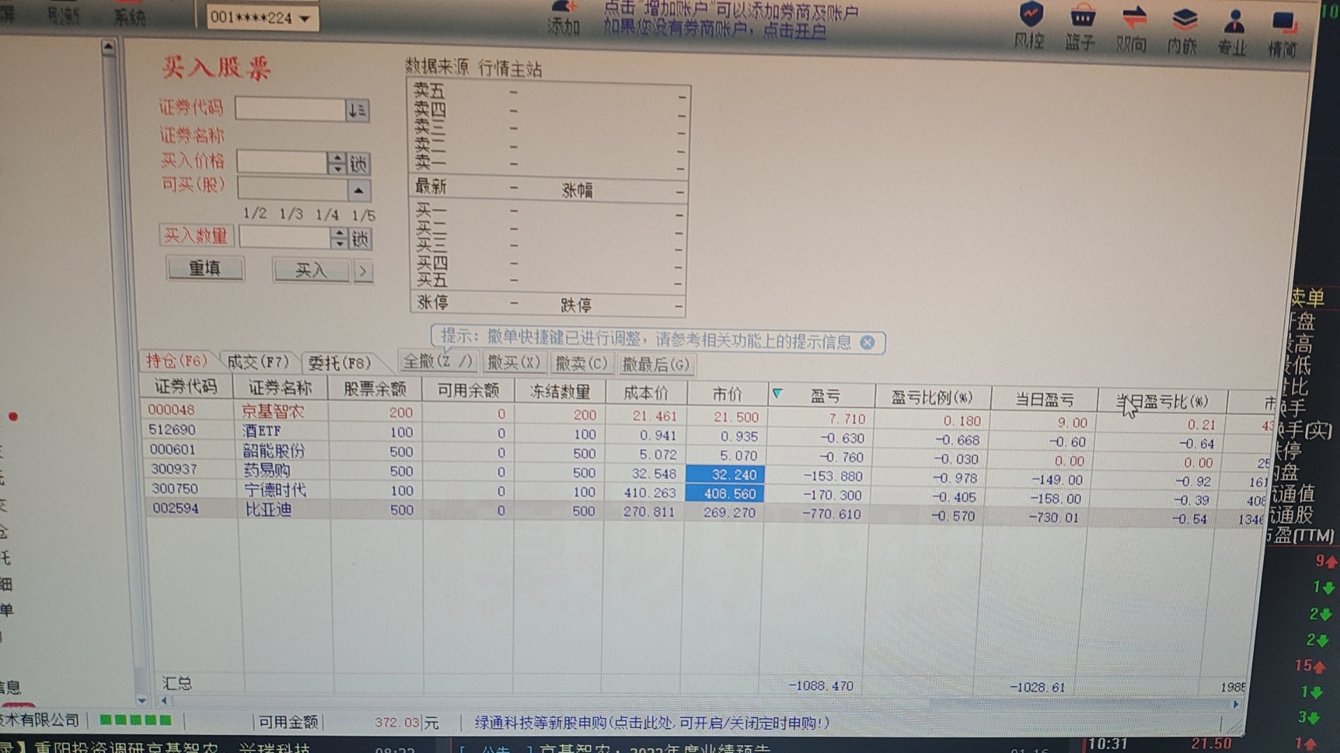 今天买了宁德时代,比亚迪,药易购,京基智能,韶能股份,酒ETF。