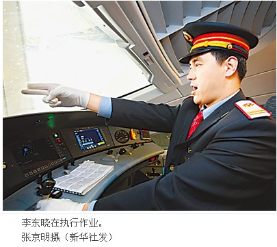 身高1米8的李东晓,浓眉大眼,身板笔挺,是北京铁路局机务段的一张名片。这不仅因为他当火车司机20年来,零事故,技术精,更因为他与中国第一条高速铁路——京津城际,有着不解之缘。