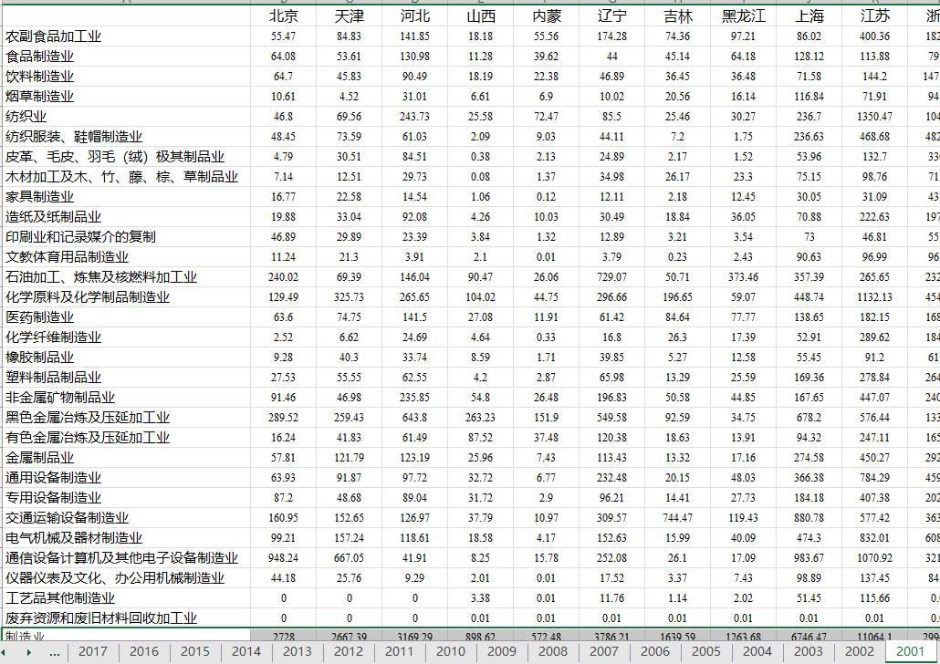 数据来源:中国工业经济统计年鉴、各省统计年鉴