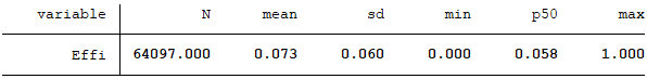 得到上述相关系数ρi,t后,计算每只股票的相关系数年平均值,并取绝对值作为股票定价效率Effi的代理变量,Effi的数值越小表示股票的异质性风险越大,该股票的定价效率就越高。