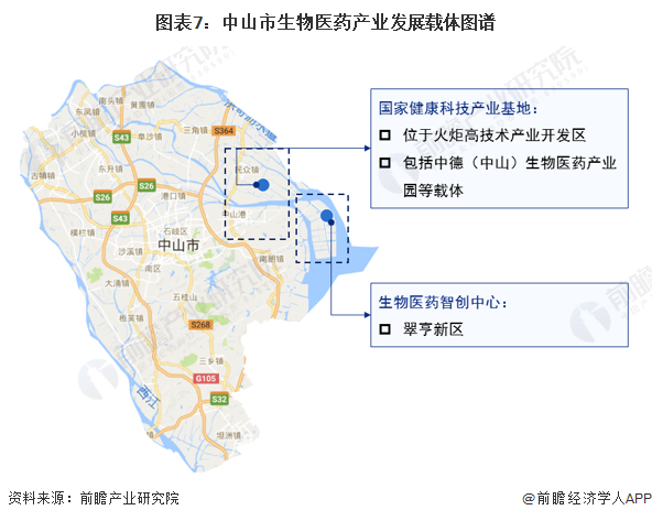 生物医药产业是中山市规划的战略性支柱产业之一,中山市在《中山市工业和信息化发展“十四五”规划》政策中鼓励推动生物医药推广应用,当前已形成了国家健康科技产业基地、翠亨新区生物医药智创中心为主的产业聚集区域。其中,中山国家健康科技产业基地于1994年由国家科技部、广东省政府和中山市政府联合创办,是我国首个按国际认可的GLP、GMP和GSP标准建设的国家级健康产业园区,也是全国首批创新型产业集群试点园区,具备火炬智慧健康小镇、翠亨医疗器械科技园、中德(中山)生物医药产业园和火炬大数据中心等发展载体。