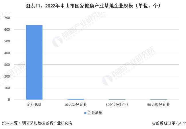 中山的健康产业起步较早,1994年就有了当时国内首个、目前大湾区唯一一个国家级健康基地,现在中山生物医药领域的创新研发平台众多,成为以健康医药为三大支柱产业之一的湾区城市。根据调研数据显示,目前健康基地已经集聚了637家企业,包括50亿级以上企业1家,30亿级以上企业2家,10亿级(工业)企业8家。园区内生物医药企业包括山德士制药、安士制药、辉凌制药、中智药业、三才医药等。