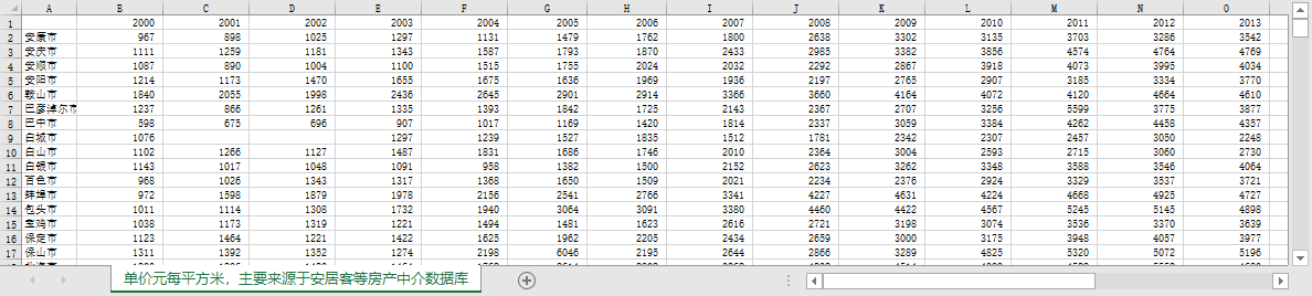 主要来源于安居客等房产中介数据库
