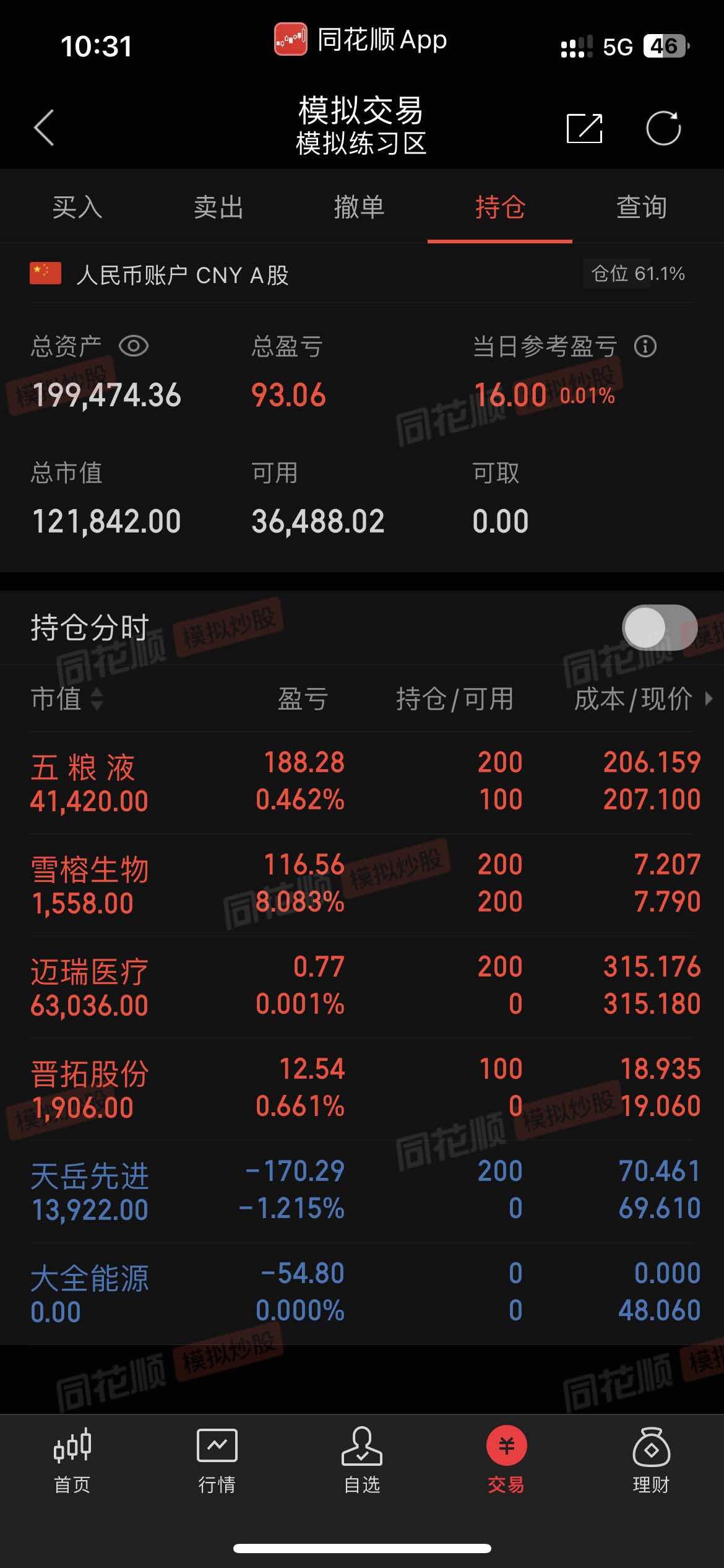 从这一礼拜来看,五粮液和雪榕生物的总体涨幅不大但是基本上不会怎么亏,所以这两只股票会选做长期股,大全能源持续亏损,所以选择把它卖掉,其他的股票不太稳定,还需要观望一下