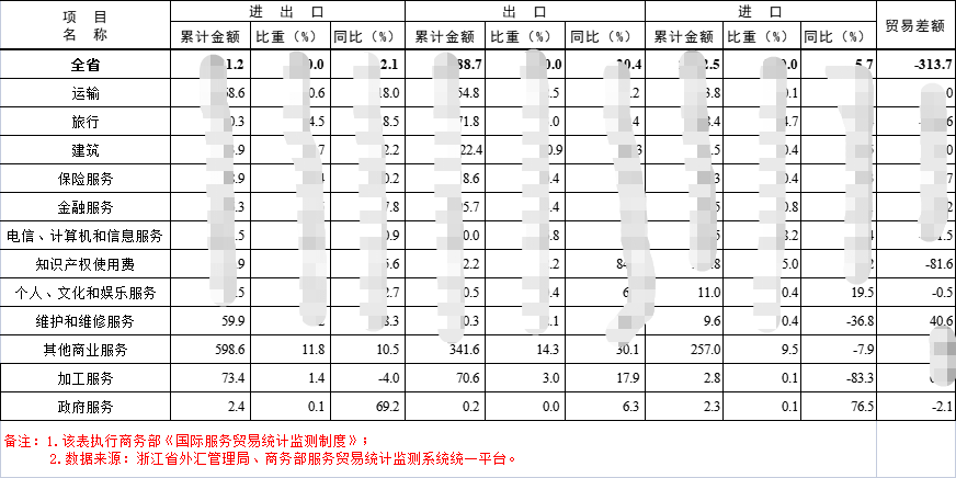 数据名称:浙江省服务贸易统计表(分行业)2022-2017年