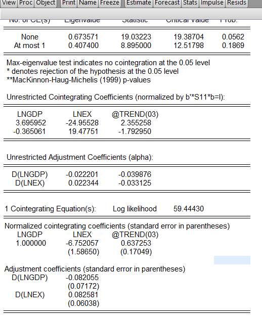 谁能帮我写一下这个协整方程和VECM方程 急需啊~~~