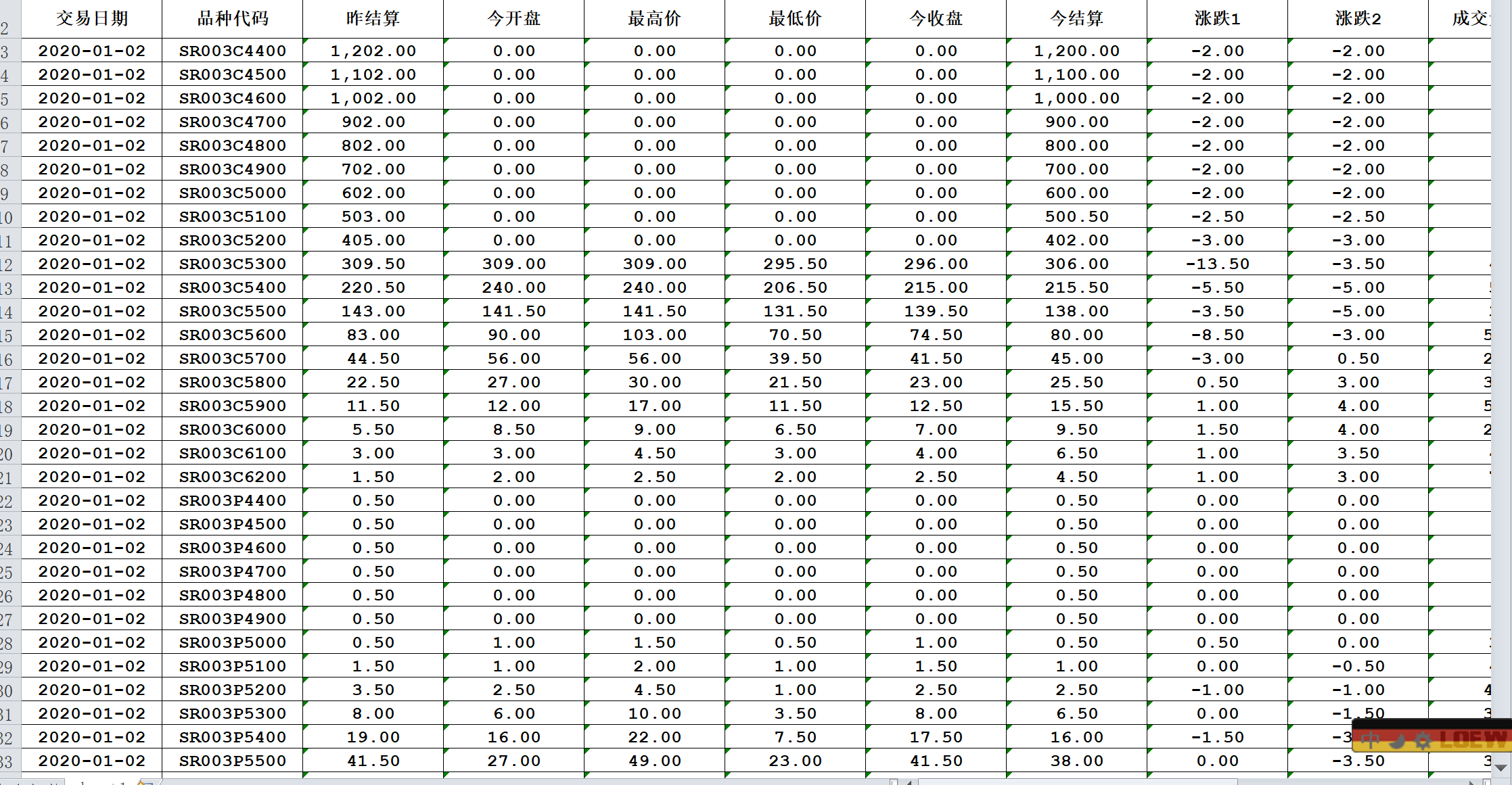 1.指标内容:郑州商品交易所白糖期权数据,包含交易日期 合约代码 昨结算 今开盘 最高价 最低价 今收盘 今结算 涨跌1 涨跌2 成交量(手) 持仓量 增减量 成交额(万元) DELTA 隐含波动率 行权量