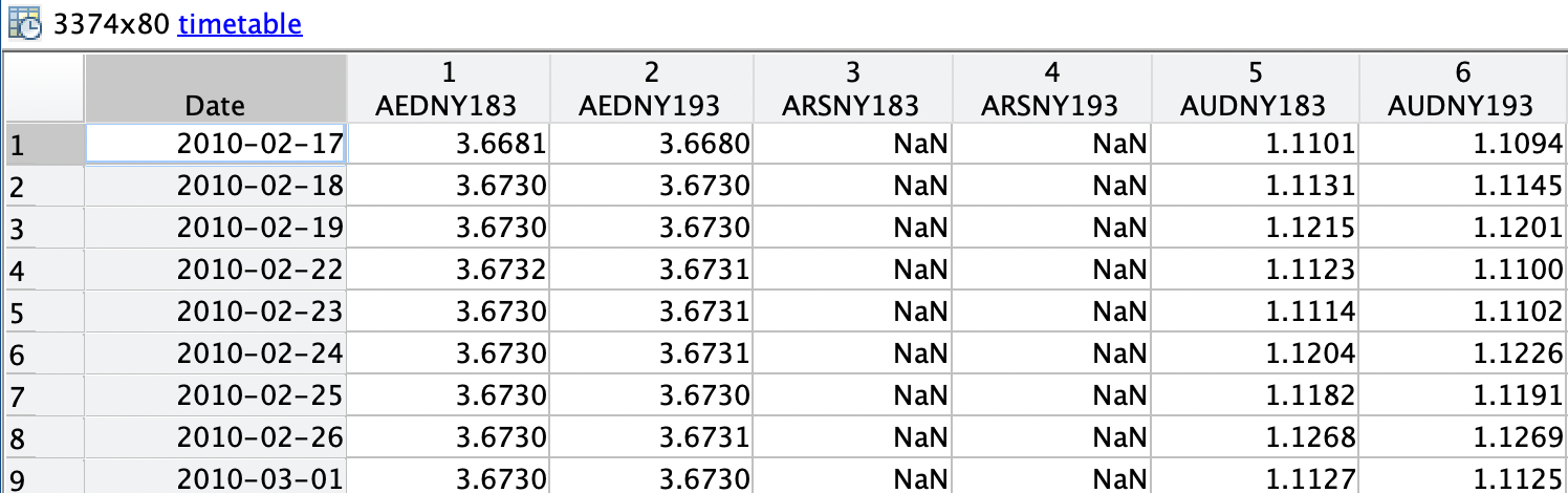 BFIX_USD 为2010.2.17至2023.2.16日度的纽约时间18:30/19:30,美元兑40种货币数据,1美元兑n外币;