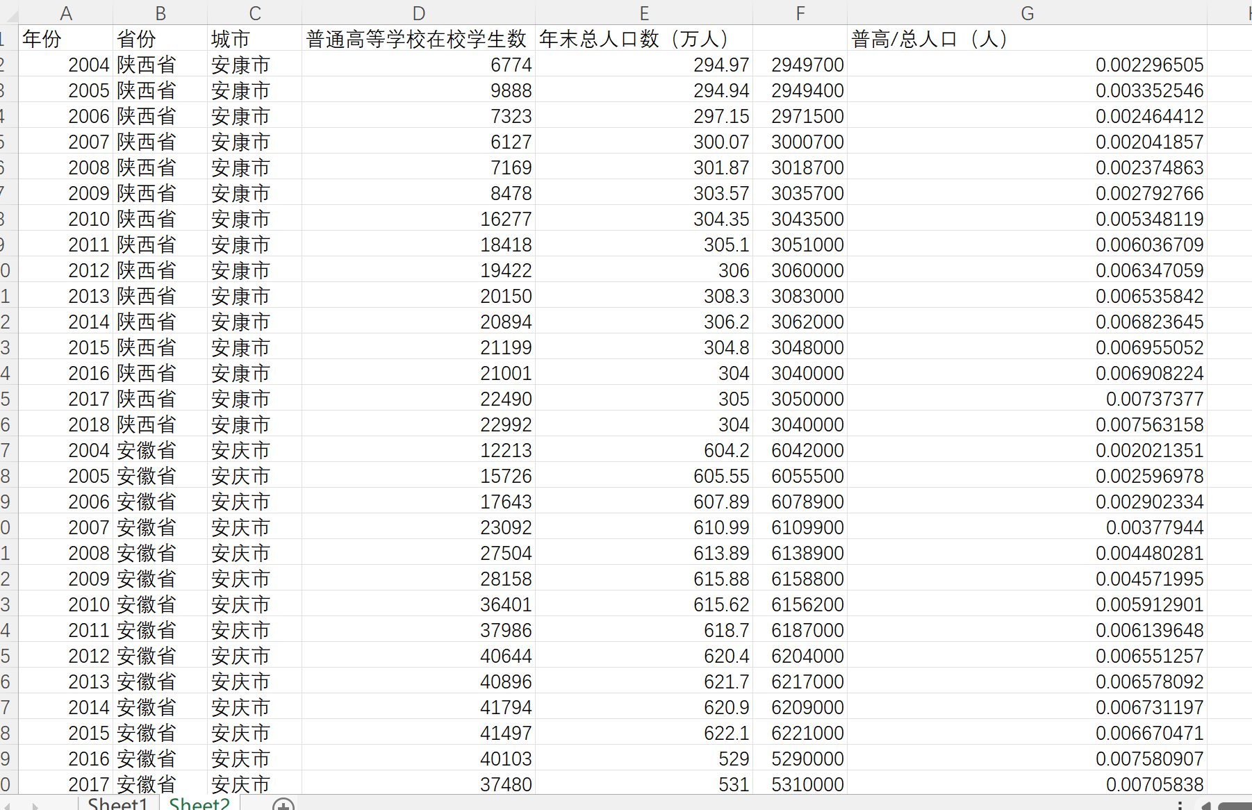 2004-2020年地级市普通高等学校人数占总人口数(面板数据)可用于衡量人口素质
