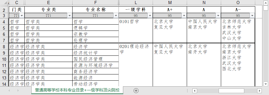 普通高等学校本科专业目录以及一级学科顶尖院校清单.xlsx